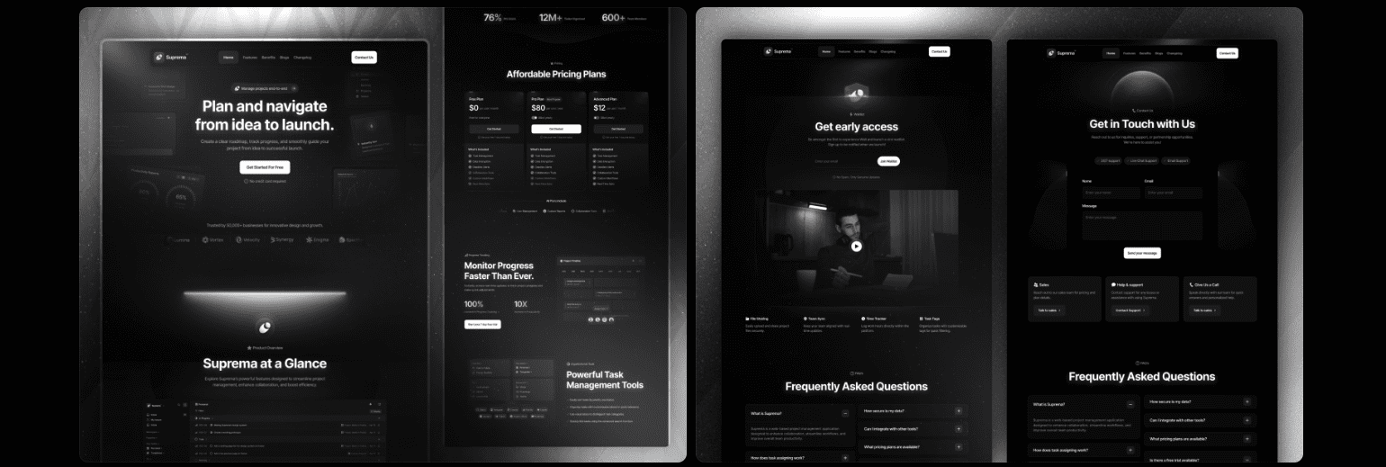Sombra and Suprema are clean, modern website templates made for SaaS MVPs that need speed now and room to grow later. Each template includes the key parts of a SaaS marketing site: feature grids to show what the product does, integration lists for compatibility, and pricing pages built to convert visitors into paying customers. Both templates leave space for deeper content through CMS, including documentation and changelogs, so teams can expand as the product matures.