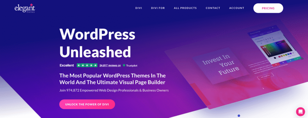 Divi is a paid visual builder from Elegant Themes with a clean look and strong tools. It’s sold as a subscription or a lifetime license. It comes as the Divi Theme or the Divi Builder plugin, which works with other WordPress themes. No free tier.