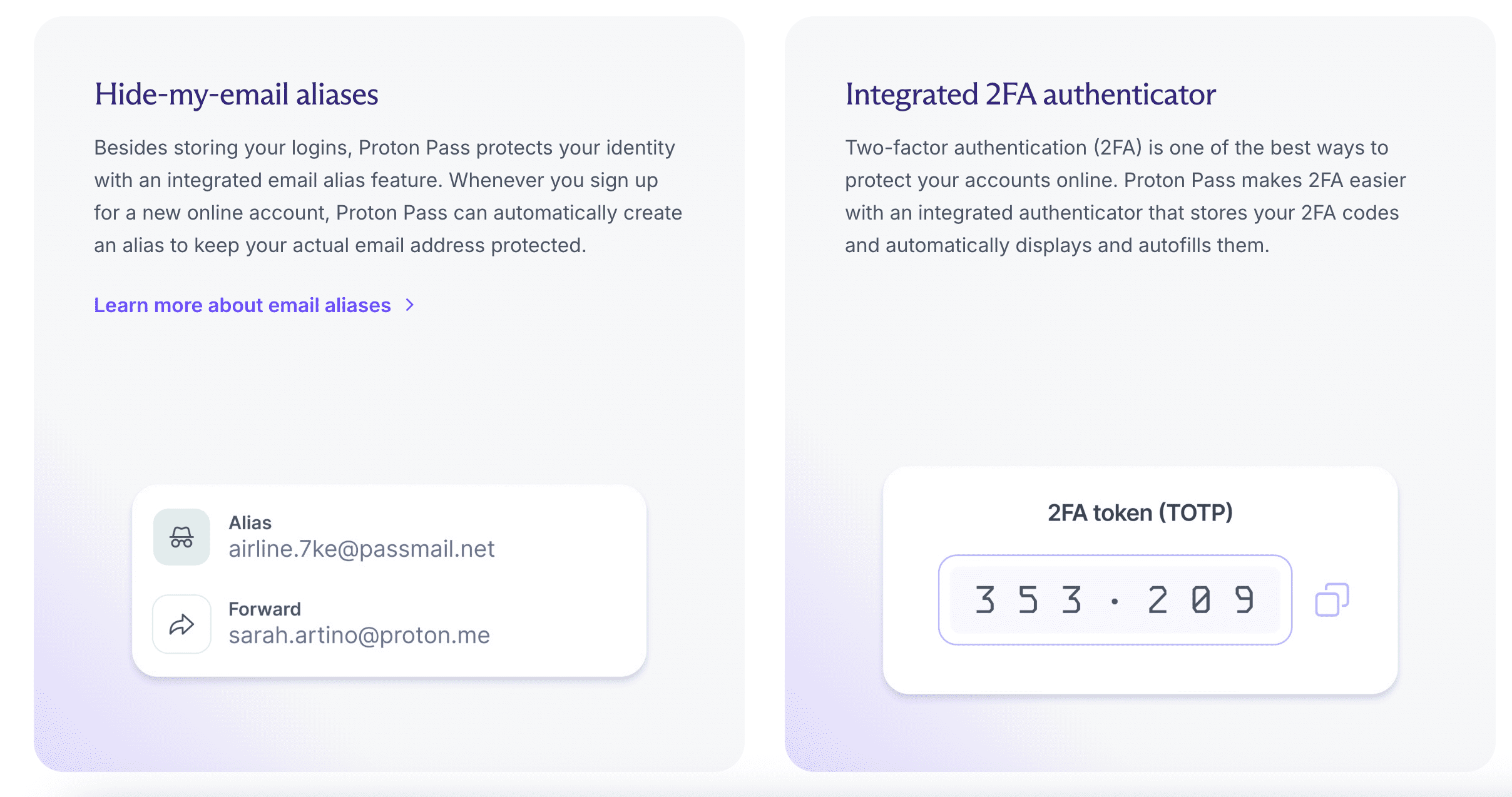 Paid individual tiers add more room and control. Plus increases the number of vaults and adds secure sharing for family or close colleagues. Email aliases from SimpleLogin are included, useful for keeping real addresses hidden on sign-ups. Priority support is part of the plan for faster help when something goes wrong. Annual billing usually costs less than paying monthly. Final prices vary by region and timing, so the checkout page shows the exact number.